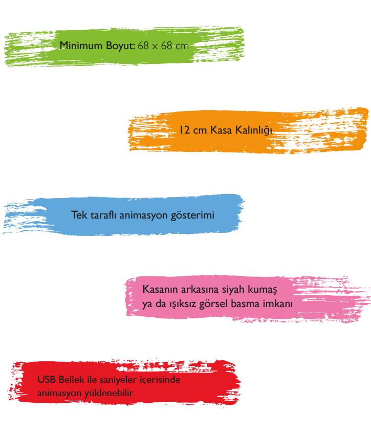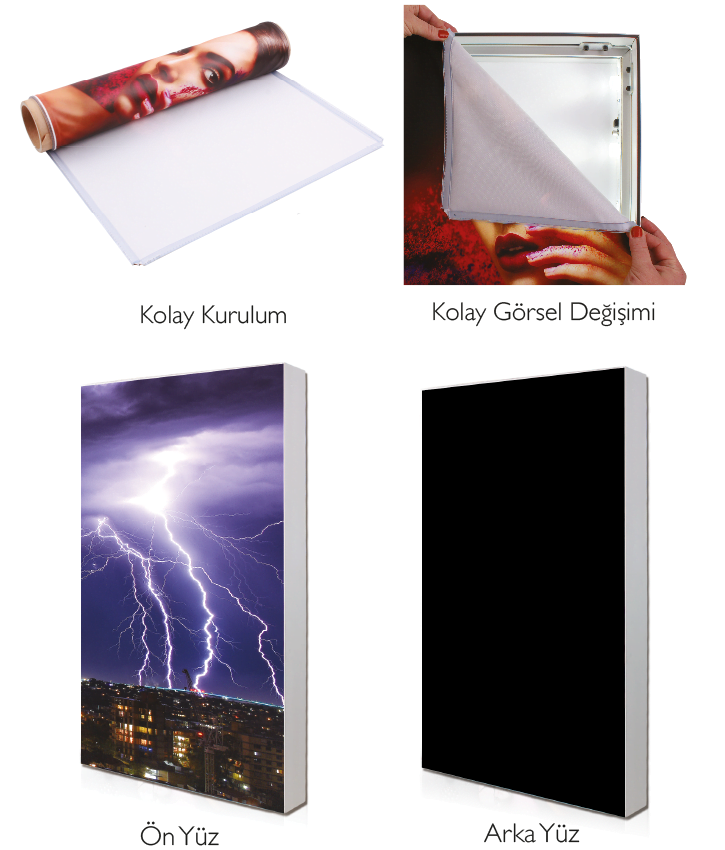 Dinamik TekstilBox için kullanılacak alüminyum çerçeve tipi dinamik LED sistemlerinin kolay montajı ve mağaza içi görsel kullanıma uygun hafiflikte, şıklıkta olmalıdır.